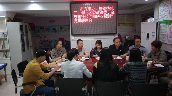 2018年5月9日上午,市方志办党支部到金茂园社区参加“四联双报到”第二季度党建联席会?;嵘希髁ノ坏吃贝砑ち私鹈吧缜肓鼻ㄎ岫怨步ㄐ榈那┒?,商讨了第二季度拟开展的“四联双报到”主题活动方案,探索了开展结对共建工作的长效机制。(图文/市地志办党支部)