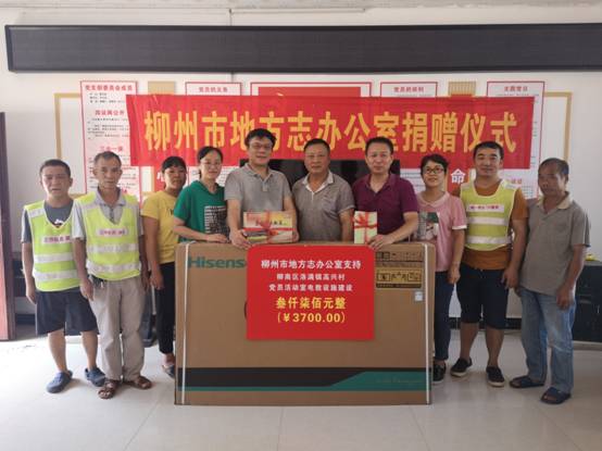 在高兴村举行的柳州市地方志办公室捐赠仪式上,市方志办向高兴村党员活动室捐赠价值3700元的电视机一台及科学种养的电教片和资料一批。同时,到帮扶对象家入户走访,宣传最新的扶贫政策,并现场查看贫困户参加柳南区脱贫攻坚产业项目“以奖代补”种植的玉米和水稻。