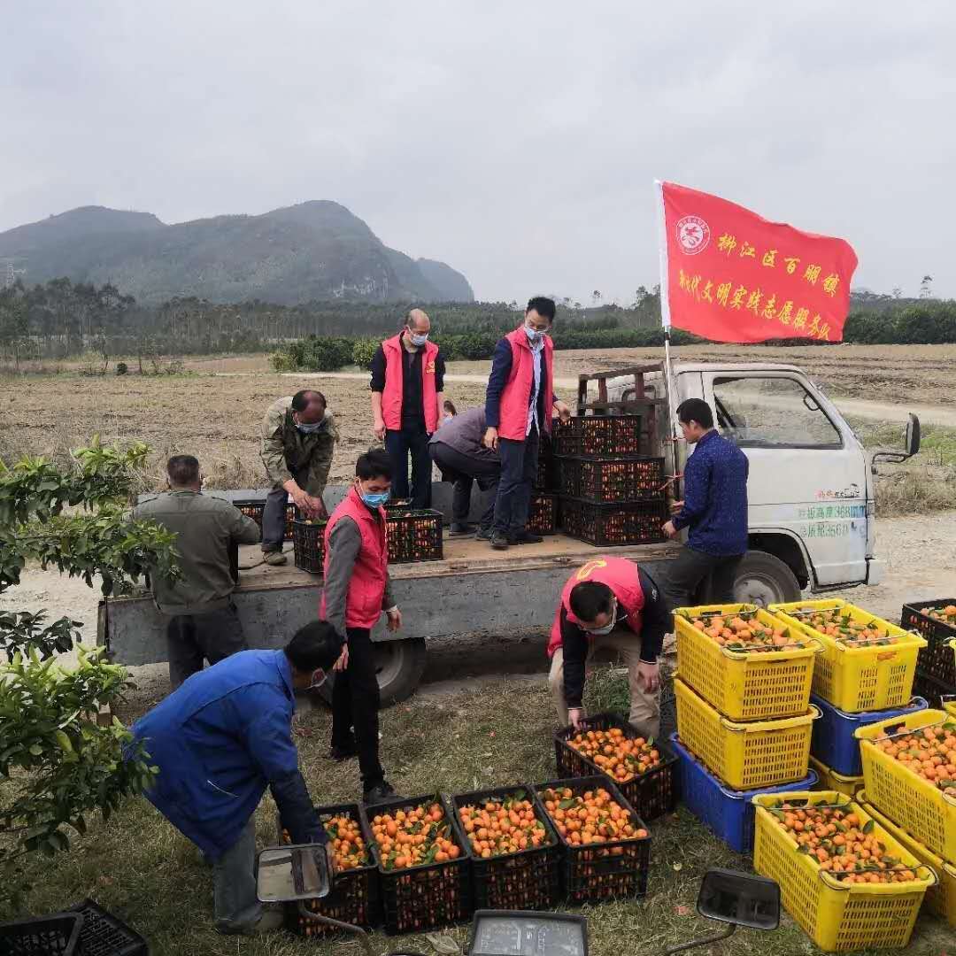 为了解决贫困户农户产品滞销问题,百朋镇新时代文明实践队志愿者们主动为贫困户排忧解难,帮助采摘砂糖橘4000多斤,部分志愿者还主动帮助开展线上电商、线下市场销售模式,共计销售砂糖橘3万多斤、土鸡1200多只。