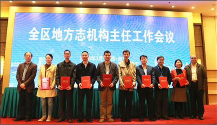《柳州年鉴》等一批成果在广西地方志成果质量评比中获奖,图为本办主任罗方贵在颁奖现场
