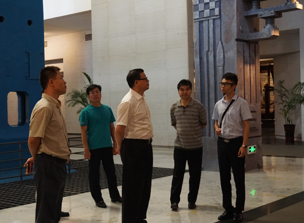 柳州方志办主任罗方贵(右二)陪同下考察柳州工业博物馆。