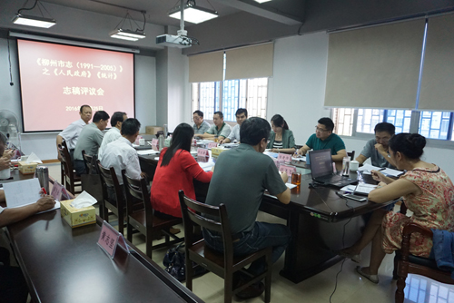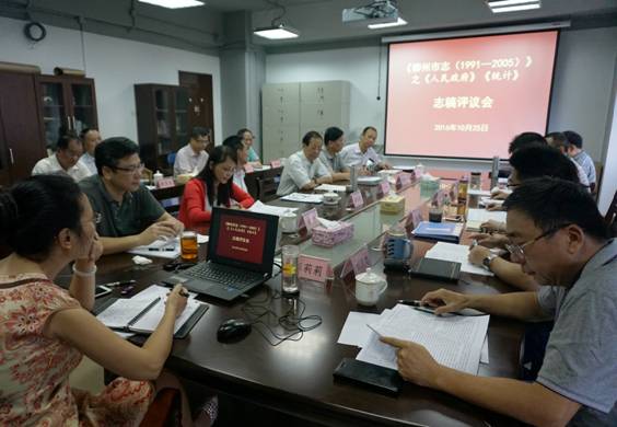 2016年10月25日,柳州市方志办召开《柳州市志(1991~2005)·市人民政府》《柳州市志(1991~2005)·统计》分志评议会 ,除本办领导、相关编辑人员外,首次邀请两部分志撰稿人及资深媒体人、有首轮修志经验及已完成二轮修志的城区修志专家参加。参加本次评议会共18人。