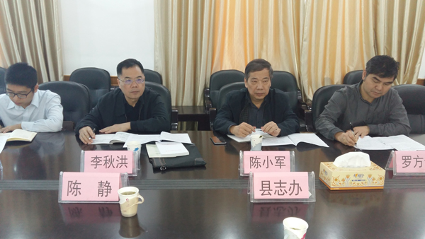 2017年4月24日,李秋洪主任(左2)、陈小军副处长(左3)在融安县调研地方志工作,市方志办主任罗方贵(右)陪同调研(钱玉洲 摄)
