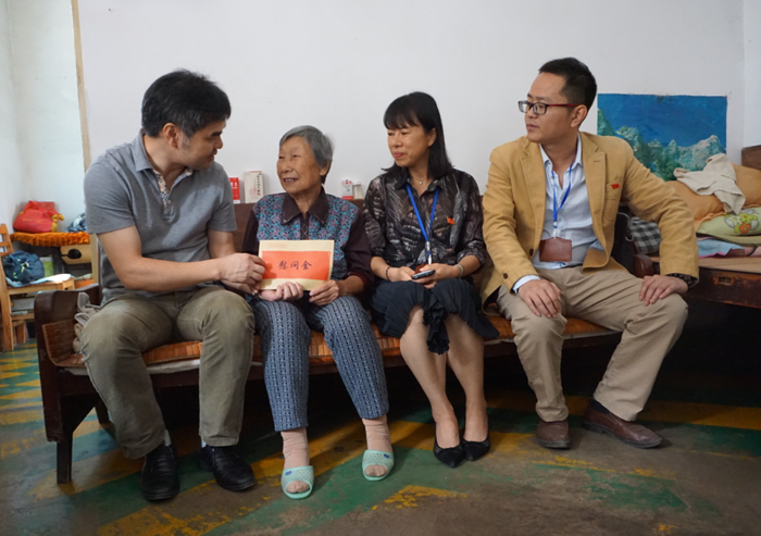 市方志办主任罗方贵(左一)代表市方志办给毛阿姨送上慰问款