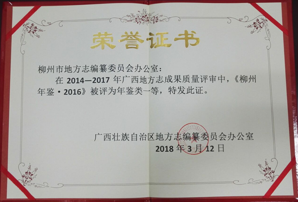 会议通报了全区“两全目标”推进情况,通报了广西地方志成果质量评比结果并颁奖,其中,由柳州市方志办编纂出版(发表)的有《柳州年鉴·2016》被评为年鉴类一等;《清代广西文人墨痕录》被评为地情资料书、部门志书类一等;《(民国)柳江县志(整理影印本)》被评为古籍旧志整理类三等;《柳州古代石刻的文献价值述论》(刘汉忠)被评为论文类三等。此外,我市在地方志书类获评三等有的城中区地方志编纂委员会编纂的《柳州市城中区志(1991—2005)》,年鉴类获评三等的有柳南区方志区编辑的《柳南年鉴·2015》。(文/刘燕)