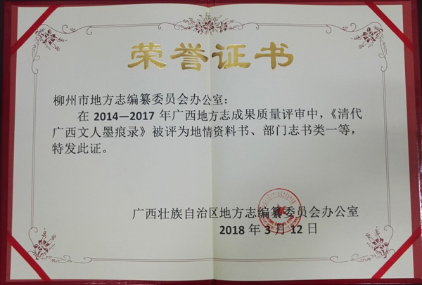 《清代广西文人墨痕录》获地情资料书、部门志书一等
