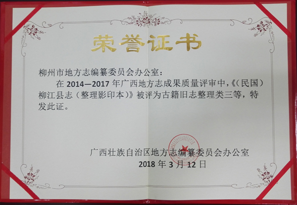 《(民国)柳江县志(整理影印本)》获古籍旧志整理类三等