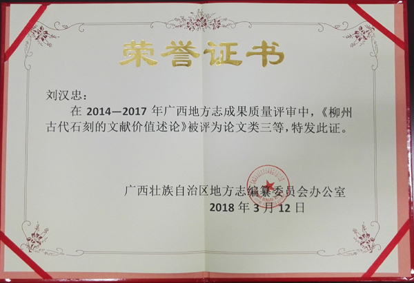 副调研员刘汉忠《柳州古代石刻的文献价值述论》获论文类三等