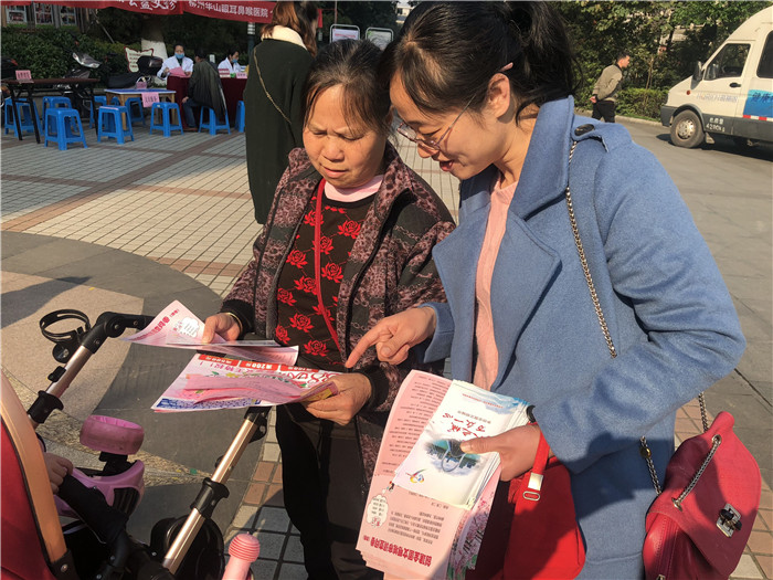 市方志办党员志愿者向居民发放创城宣传资料