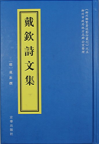 近日,由柳州市地方志办公室整理出版的古籍《戴钦诗文集》由京华出版社出版发行?!洞髑帐募繁嗦济鞒尽堵乖?、民国刻本《玉溪存稿》两种。撰者为明代著名诗人戴钦(1493至1526年),字时亮,号鹿原,自署玉溪子,马平(今柳州市)人,明代柳州八贤之一。戴钦于正德五年(1510年)中举,正德九年成进士,授任刑部浙江司主事。正德十五年,任刑部浙江司主事,每逢大典礼、大狱讼,多受命起草文牍,援笔立就,无不允当。嘉靖二年(1523年),任刑部陕西司员外郎。次年升刑部云南司郎中。是年二月,以朝中议大礼事起,戴钦声言“苟有裨於国是,吾何爱於髮肤”,并於七月参与朝官伏阙陈议,被廷杖,身受重创。嘉靖五年七月,推升江西提学佥事,未及任而卒於京师。灵柩返葬於柳州立鱼峰下。