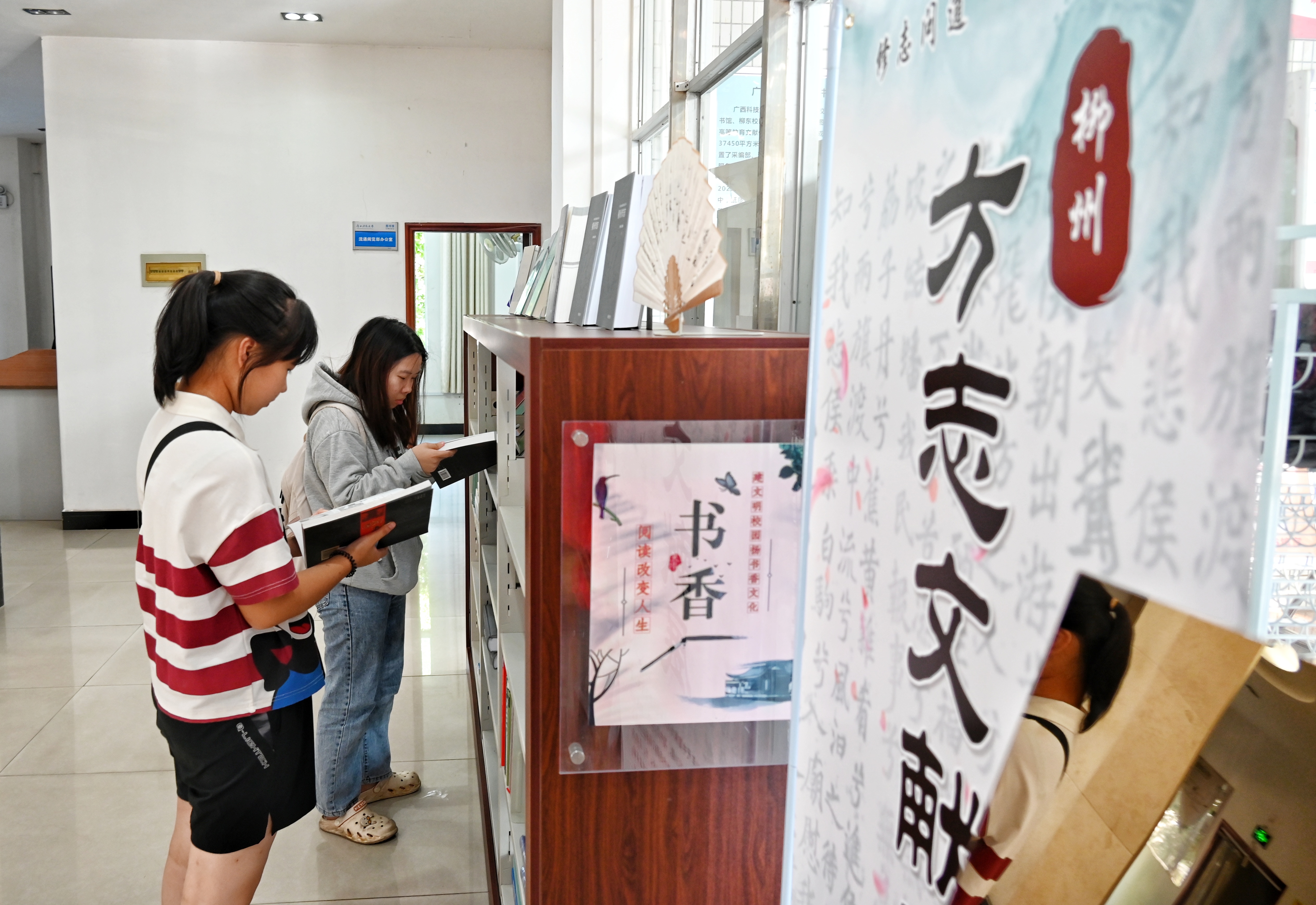 学校师生在书展前阅读方志文献(周仟仟摄)