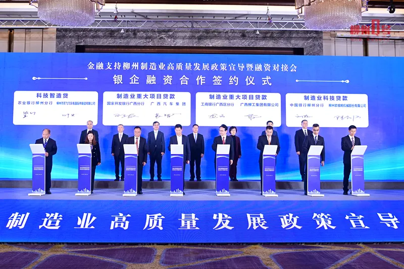 谭丕创代表自治区政府和柳州市委、市政府对各金融机构和广大企业一直以来关心支持柳州发展特别是制造业发展表示感谢。他指出,当前,柳州正深入贯彻落实习近平总书记关于广西工作论述的重要要求,坚决按照党中央和自治区党委决策部署,着力推动传统产业转型升级、新兴产业培育壮大、优势产业巩固提升,积极构建以现代农业为基础、以先进制造业为龙头、以现代服务业为牵引的现代化产业体系,加快推进新型工业化、发展新质生产力、建设制造强市,全力争创国家新型工业化示范区。制造业高质量发展离不开金融的有力支撑,在当前柳州加快推进新型工业化的关键时期,四家单位联合出台《若干措施》,以高质量金融服务助推柳州制造业提质增效,为广大企业发展注入了“金融活水”,为柳州加快产业转型升级、重振工业雄风提供了强大动力和有力支撑。