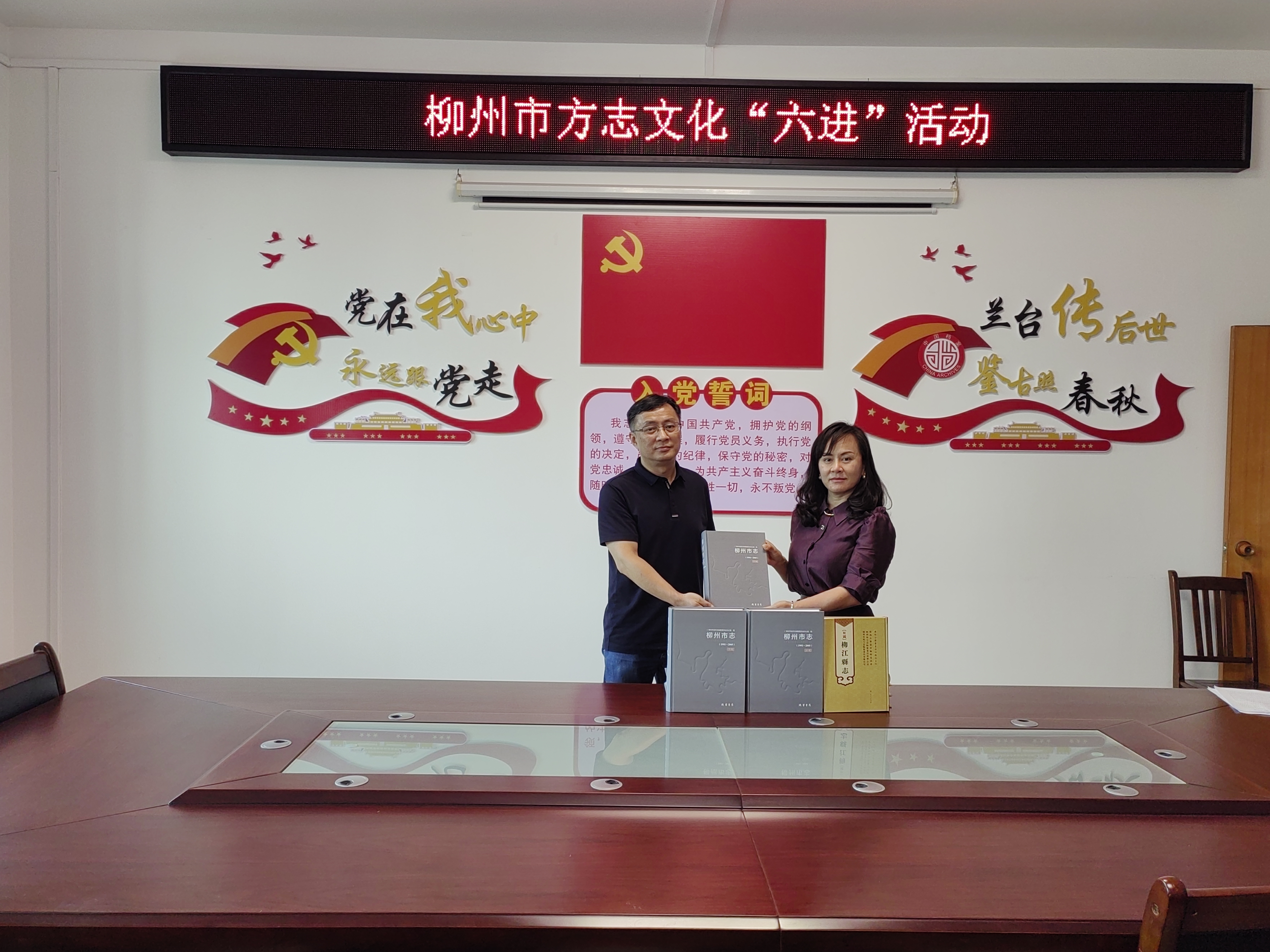 其间,调研组分别在柳江区和融水县开展方志文化“六进”活动,向柳江区档案馆、柳江区图书馆、融水苗族自治县图书馆赠送了《柳州市志(1991—2005)》、历年《柳州年鉴》等志鉴书籍近50册。