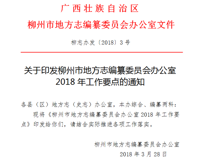 强化责任,改进方法,确?!读菽昙?/span>2018》编辑提速、质量提升;以全面实现“一年一鉴、公开出版”覆盖目标为要求,在巩固已有成果的基础上,指导市辖区、鹿寨、融安和融水三县全面完成2018年度综合年鉴编辑出版,支持《柳北年鉴》申报2018年度广西年鉴精品工程项目,指导柳城、三江两县重启综合年鉴编辑;结合实际,着眼长远,以年鉴编辑为平台,推进地情资料收集管理制度化、规范化建设,分步构筑地方志事业发展的资料基础。