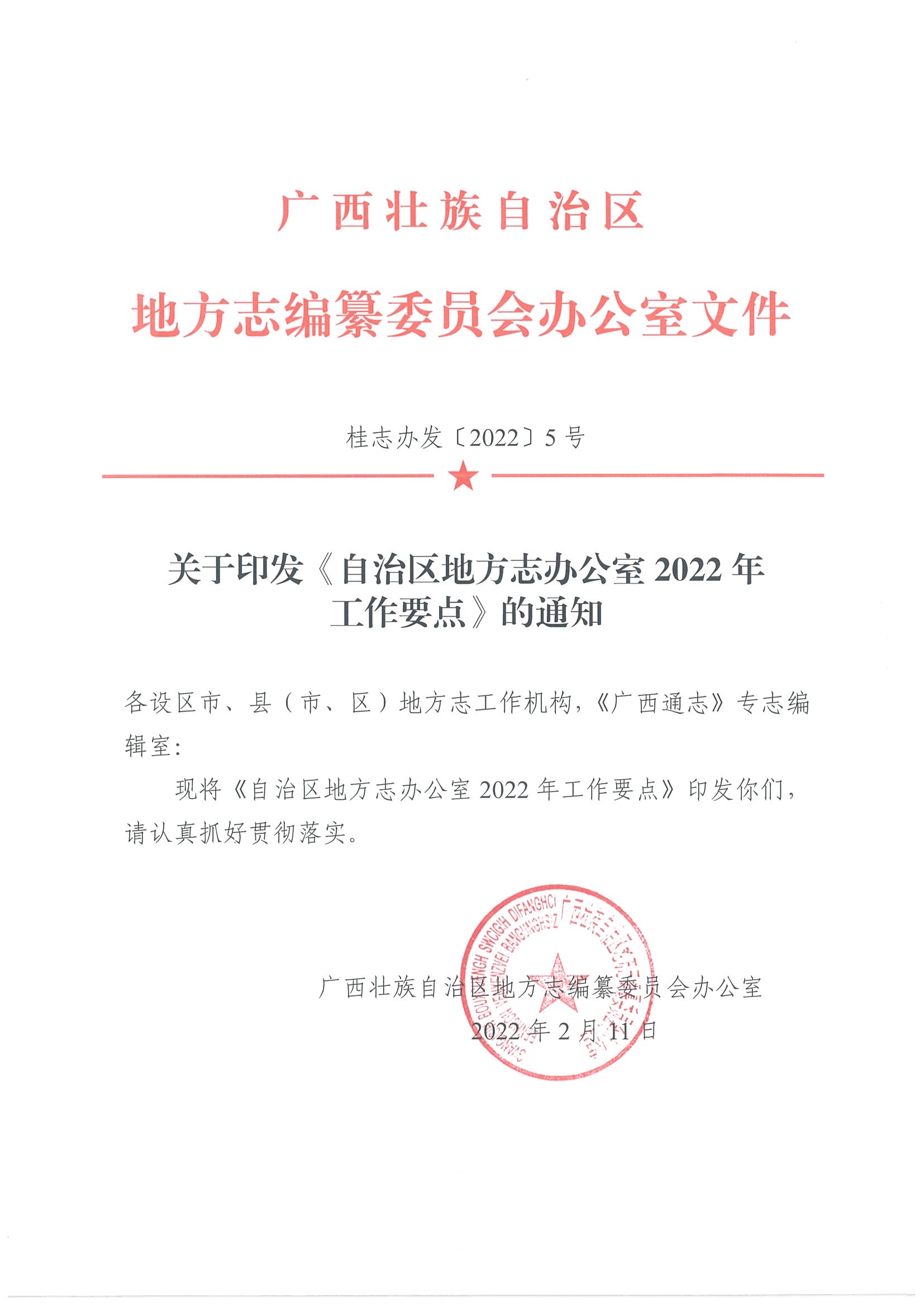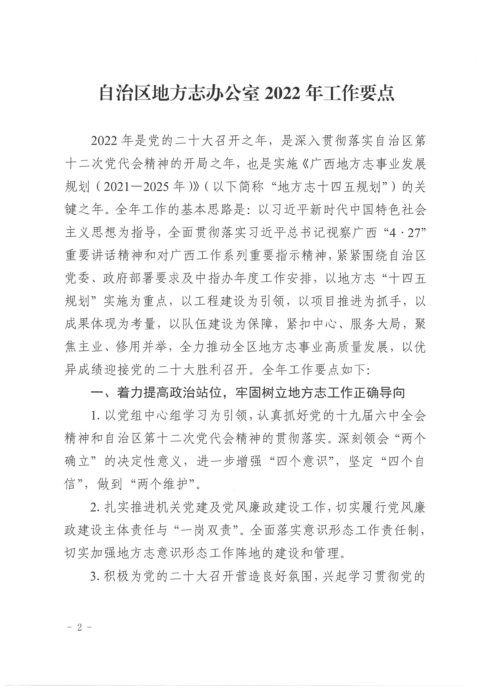 关于印发《自治区地方志办公室2022年工作要点》的通知