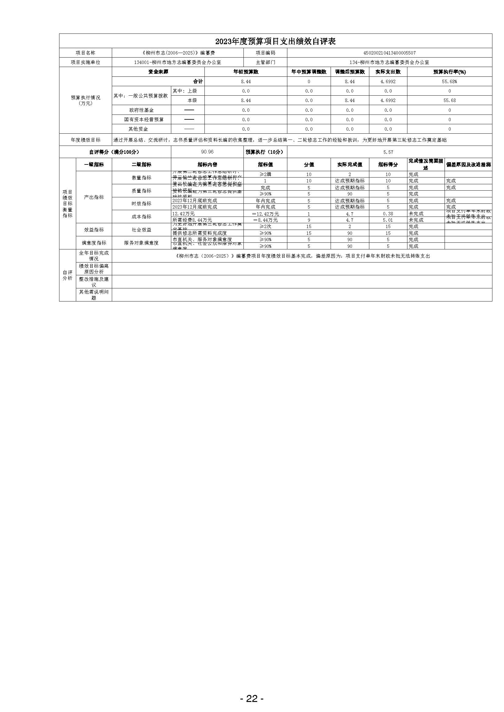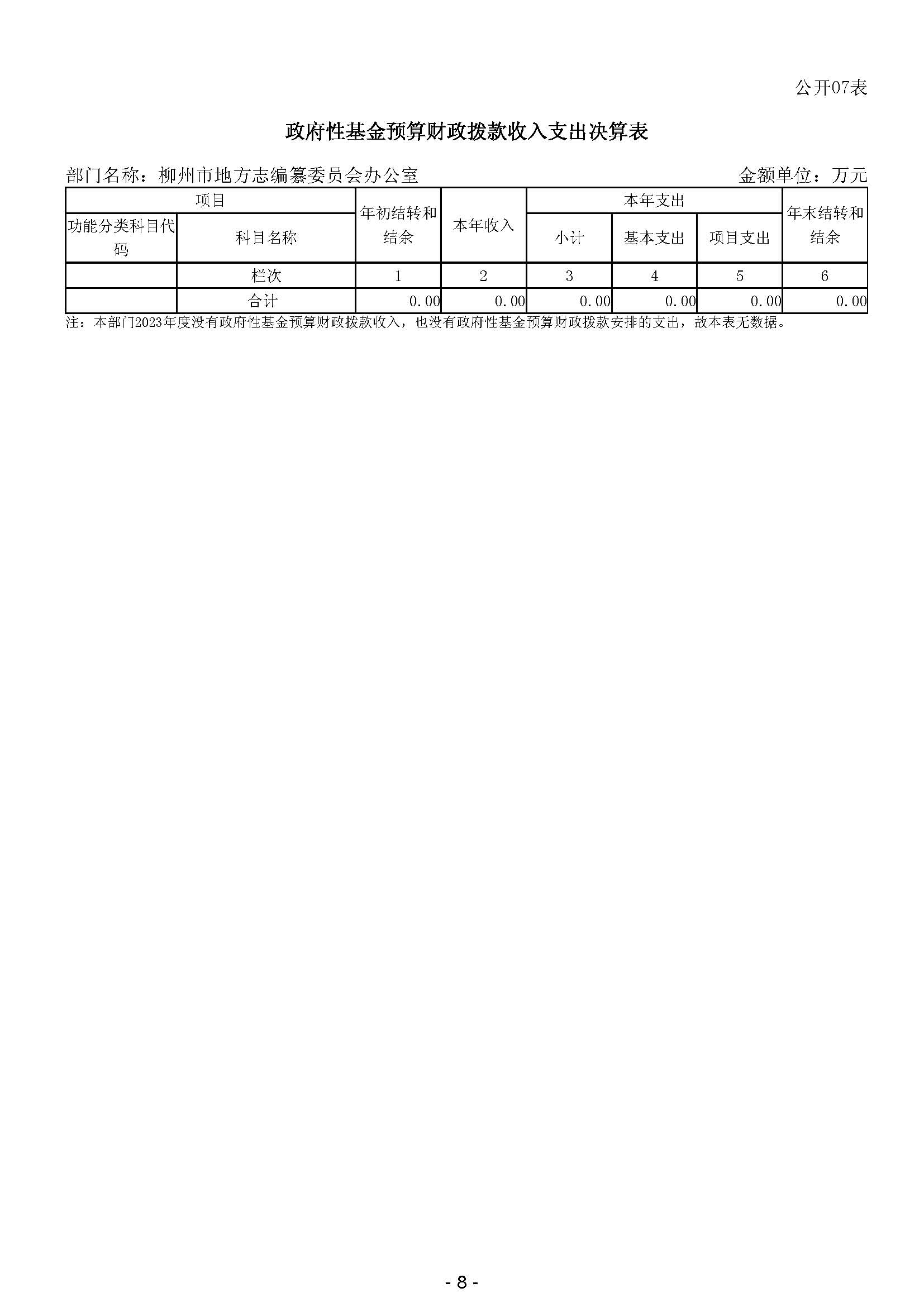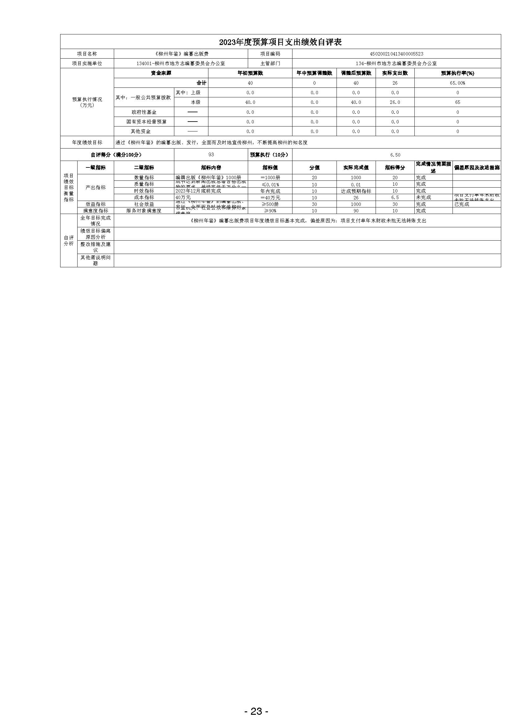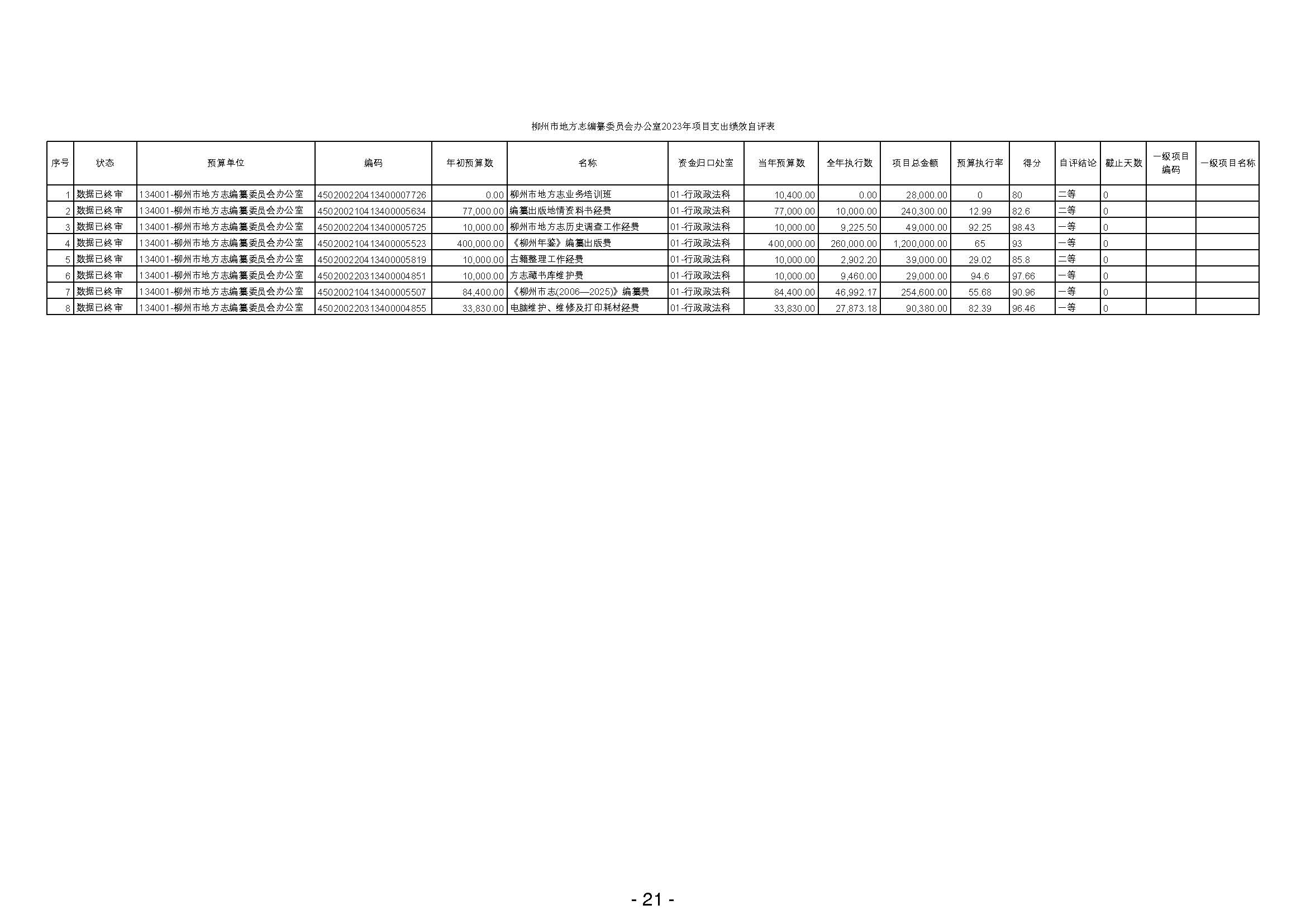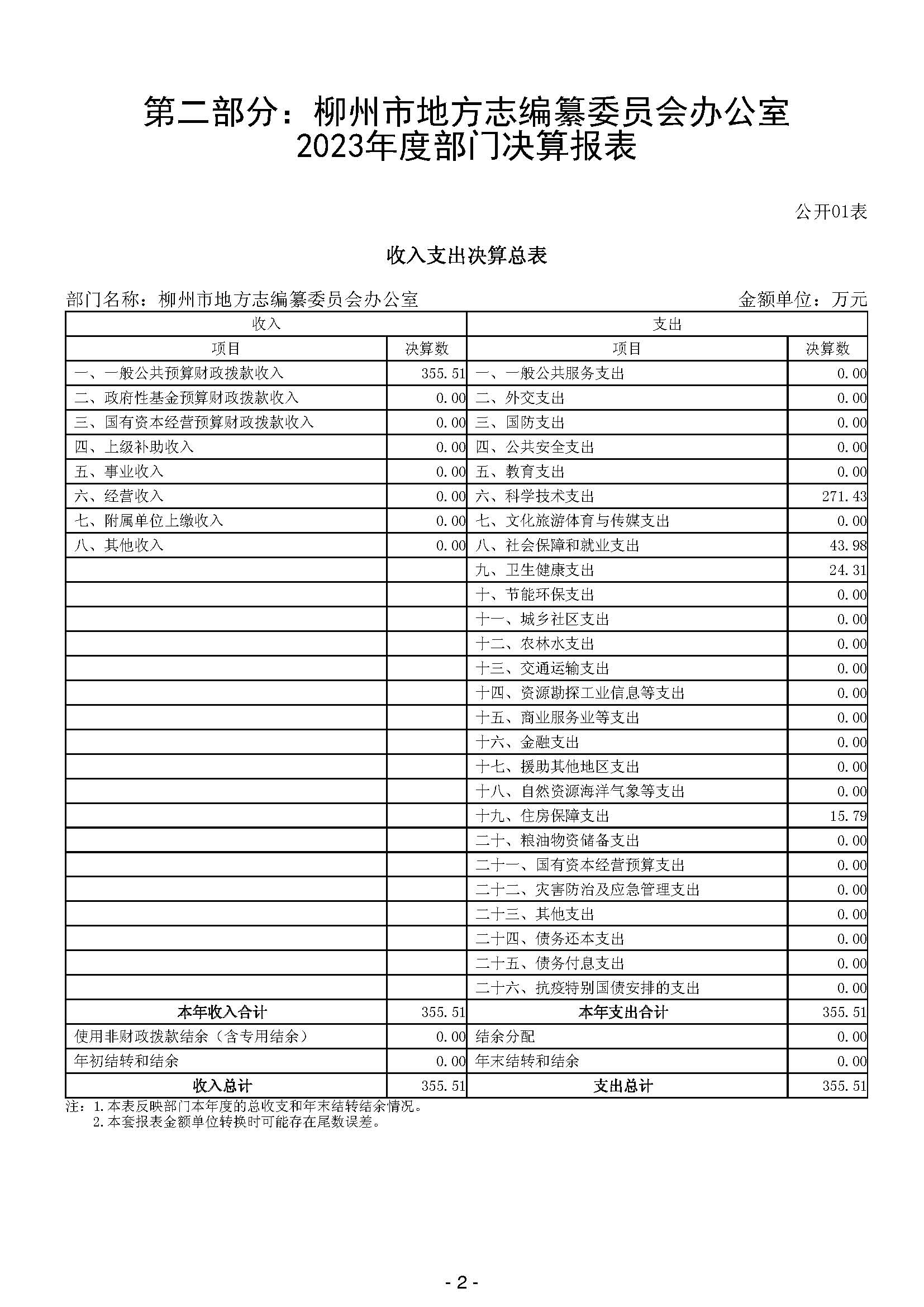 柳州市地方志编纂委员会办公室2023年度部门决算
