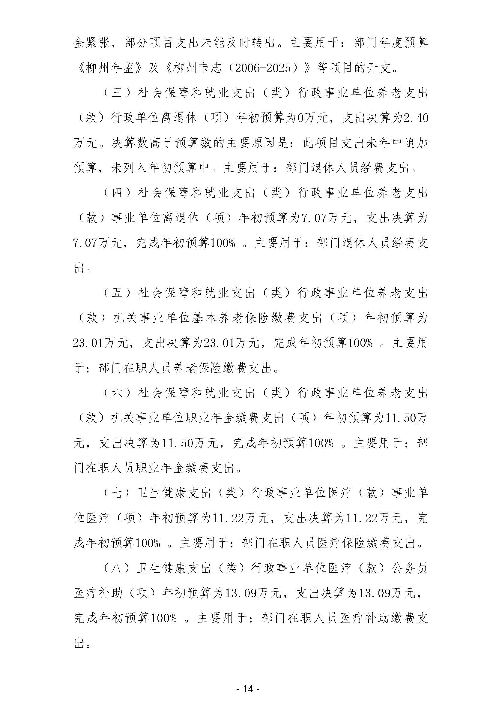 柳州市地方志编纂委员会办公室2025年部门预算公开说明