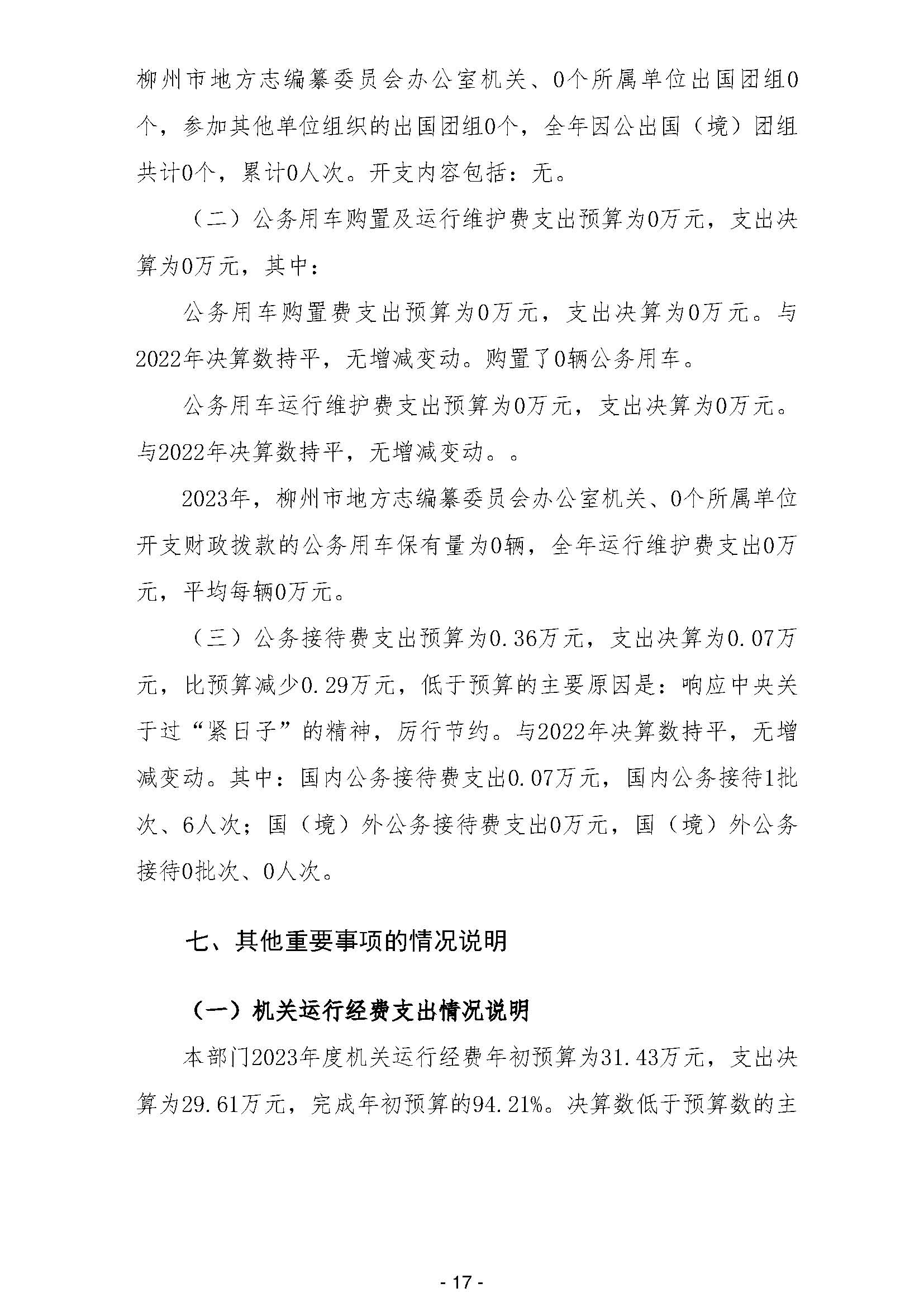 柳州市地方志编纂委员会办公室2023年部门决算