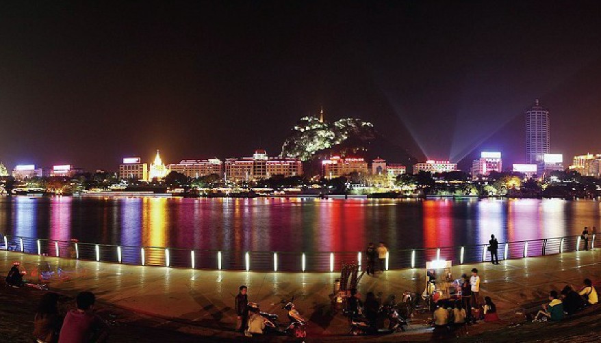 柳州山水秀美,一条“江流曲似九回肠”(柳宗元诗句)的柳江自西北流入柳州市区,呈“U”字形南下北上,流至龙壁山再调头东去。河道绕城如壶形,流经柳州市区达75公里,使整座城市处于山环水抱之中,岭树绵延,河水清澈,风光独异?!鞍倮锪笔橇菀坏蓝捞囟晾龅纳剿缇跋撸加谒宕笄派嫌喂婊ㄉ柚械南婀鹛反笄?,止于桂柳高速公路洛维大桥,全长55.5公里。景观风貌分为工业文化景观区、都市生活文化景观区、山水生活文化景观区、现代产业文化景观区4个区?!丁鞍倮锪本肮劭刂菩怨婊纷帕Π蚜蛟斐缮⑸剿?、文化柳江、活力柳江、动感柳江、宜居柳江。景观建设分为近期、中期、中远期及远期四个阶段进行。在柳江南岸的码头登上豪华游轮航游百里柳江,沿途穿行横跨柳江上的五座大桥,可观赏世界最宽的人工瀑布之一——蟠龙山大瀑布群,可欣赏到有龙城外滩之称的江滨公园、被喻为玉带柳江花边的柳堤等迷人景致,还可以眺望有丹崖赤壁之称的鹅山、“南潭鱼跃”(立鱼峰)、“天马腾空”(马鞍山)、“东台返照”(东台山)、“驾鹤晴岚”(驾鹤山)、“龙壁回澜”(龙壁山)等著名景观和鳞次栉比的现代化城市建筑?!鞍倮锪本肮鄞匕侗涑梢惶跎剿憷龅淖呃?,青山、绿水、飞瀑、白鹭在城市中与人构成一幅自然和谐的画卷。